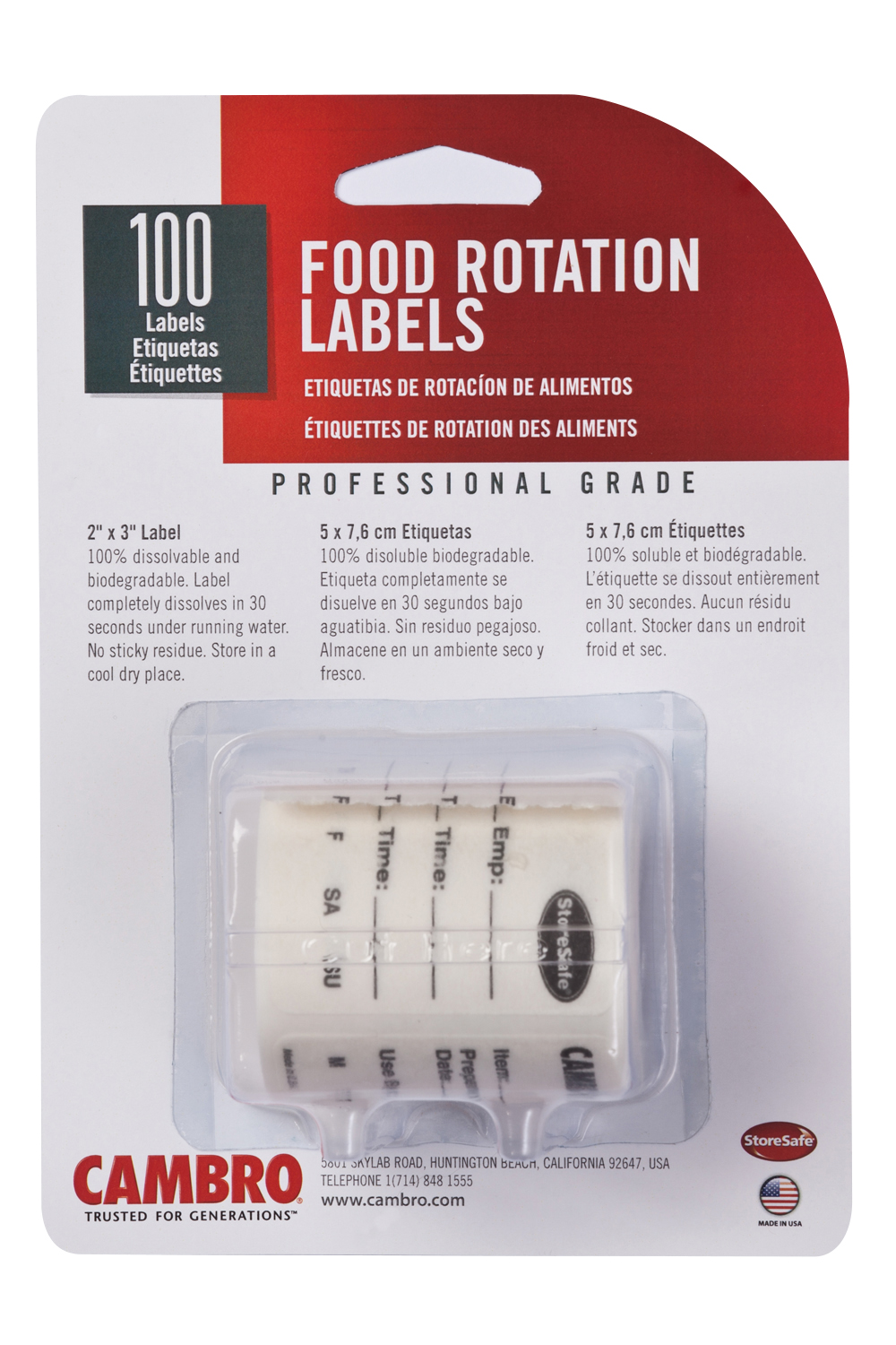 Of all the Cambro identification products we’ll mention, these are the ones you absolutely, without a doubt must have in your kitchen. It is extremely important that you label the food in your storage areas. Containers should be labeled with what type of food is inside, the date and an employee’s initials to make sure it’s used or thrown away before it goes bad. Using labels decreases the chances of food being wasted and supports the FIFO system. While you may already label your containers with various kinds of tape, some types leave a residue that can create harmful bacteria. Cambro Storesafe Food Rotation Labels are dissolvable in less than 30 seconds under water or through a dishwasher. You’re left with clean containers and no residues left behind.